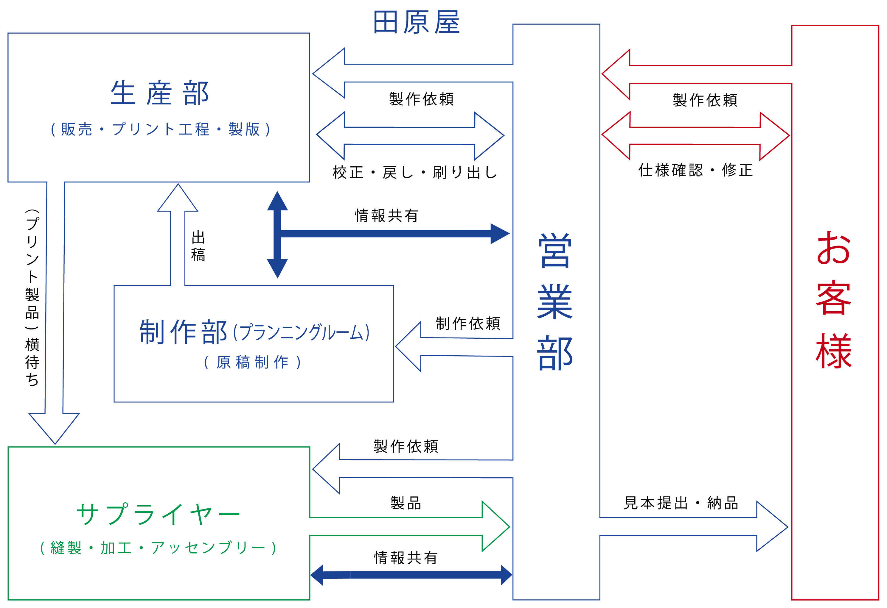 制作、生産、営業各セクションのしっかりとした連携を実現します。