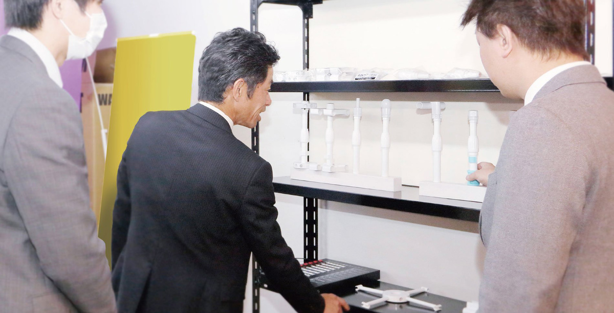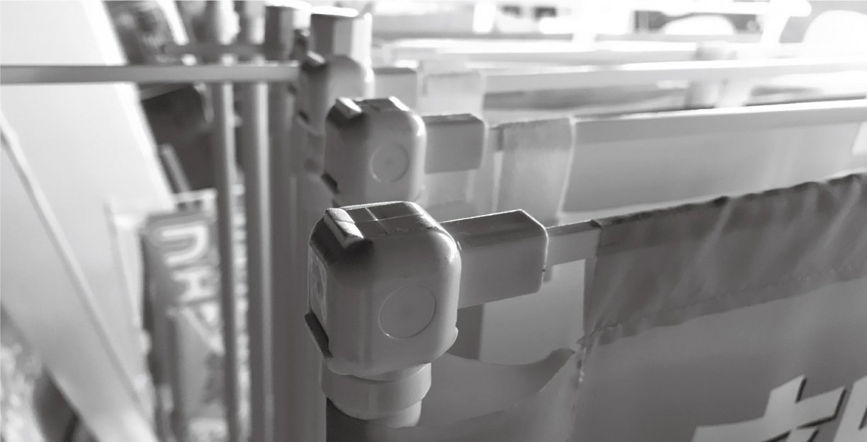 当社オリジナル製品の「核」となる、専用設計のパーツです。既存ののぼり用ポールに接続することを想定しているため、コストメリットの高い製品となっています。