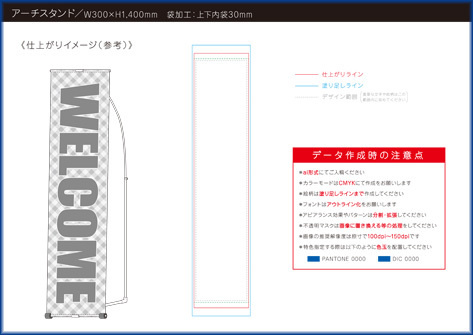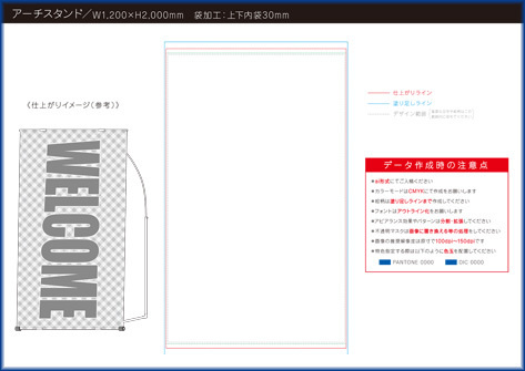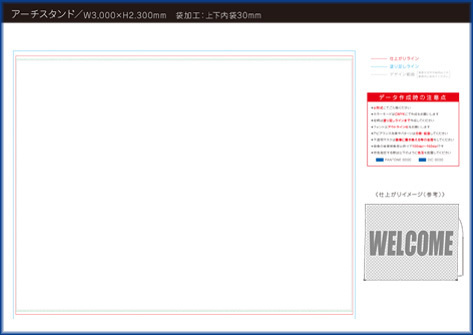 ご使用方法:保存したPDFデータをIllustratorで開き、「デザイン」レイヤーへデザインを配置してください。