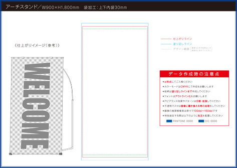 ご使用方法:保存したPDFデータをIllustratorで開き、「デザイン」レイヤーへデザインを配置してください。